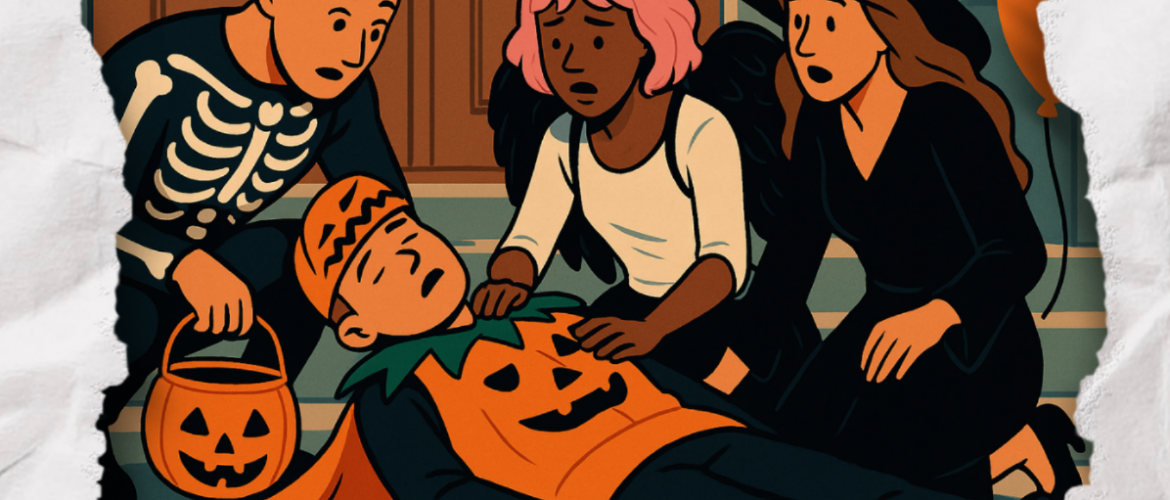 La música retumba, las luces parpadean y todos bailan disfrazados entre risas y humo artificial. 🎶💃 Es una noche de Halloween perfecta… hasta que alguien se tambalea, pierde el equilibrio y cae al suelo. 😱 De repente, el ambiente de diversión se congela. En ese instante, lo que hagas —o no hagas— puede marcar la diferencia entre un simple susto y una emergencia real.